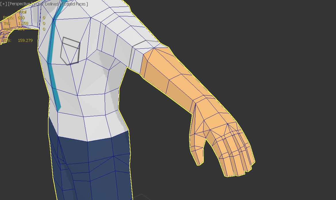 얼핏 보면 정상적으로 보이지만 3D 맥스 작업물과 비교할 때 엄지손가락이 안쪽으로 말려 들어가 있음을 확인할 수 있습니다.